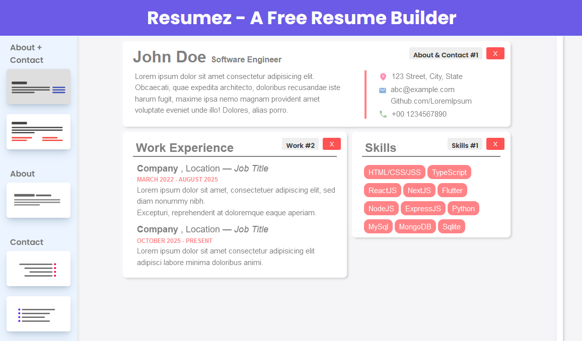 Easily design resumes with simple drag & drop cards. Making a resume has never been easier.